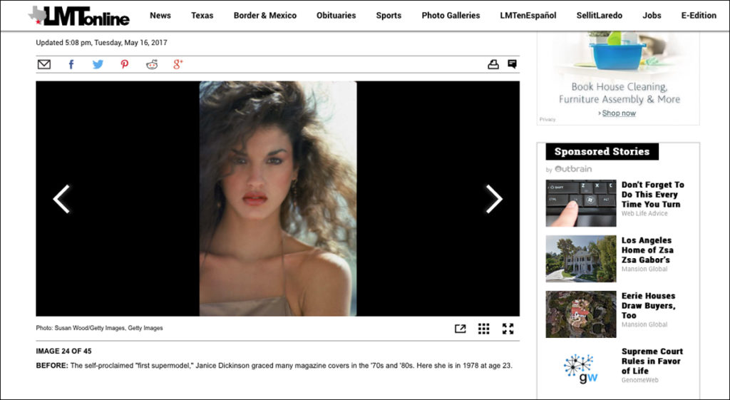 Janice Dickinson in Laredo Morning Times Written by Susan Wood, Posted in Recent Publications Read More