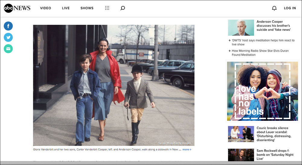 Gloria Vanderbilt on ABC News Written by Susan Wood, Posted in Recent Publications « Martha Stewart in Vanity Fair Diane Von Furstenberg on E! »