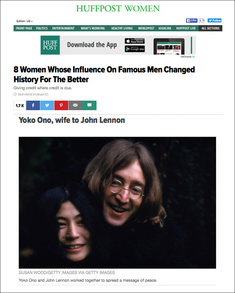 John Lennon & Yoko Ono In The Huffington Post Written by Susan Wood, Posted in Recent Publications « Dennis Hopper on MTV.com Paul Prudhomme In The LA Times »
