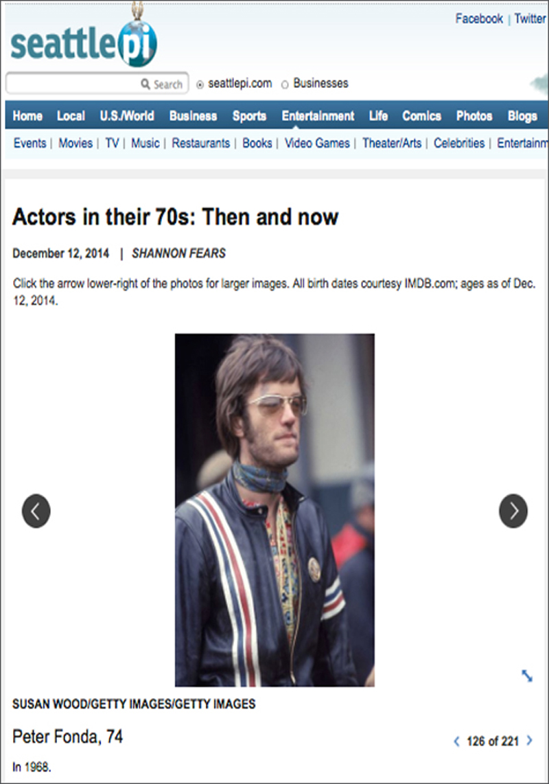 Peter Fonda on The Seattle Post-Intelligencer Written by Susan Wood, Posted in Recent Publications « Frank Gehry on About.com Mad Man Fashion in The Houston Chronicle »