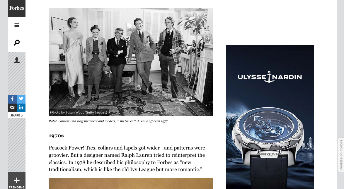 Ralph Lauren in Forbes Magazine Written by Susan Wood, Posted in Recent Publications « Chet Baker in FranceInter Cherlyl Tiegs on AOL.com »